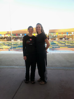 I saw Brandi get out of the pool when I had 200 m left to go so I knew we were right on track! Transition from swim to bike was pretty uneventful, and fairly fast. I don't mess around over there. Towel off, socks on, shoes on, helmet on, go! As soon as I started pedaling I knew something wasn't right. It felt so HARD. My quads were burning and I was hardly moving. I kept shifting gears to make it easier, only it wasn't helping. I thought maybe I had used my quads a lot on the swim so that's why they were burning. On the 2nd lap, I finally noticed a noise coming from my front tire. At first I thought it was a air coming out (nooooooo!!!!) but then looked closer and one side of my front brake was rubbing against the tire. I tried jiggling it and loosening the brake, all while still riding, but nothing helped. At least I had figured out why it was harder than usual. I was riding against my brake! I didn't want to risk stopping if I couldn't fix it so I just kept on going. I finally got my Garmin going, and got my pace up to around 16 mph. That's the best I could do with that tire. I had one GU on the 3rd lap and sips of Gatorade/water mix every once in awhile. I was feeling good despite sabotaging my own bike. On my 6th and final lap, I didn't see another soul on the bike course. I was pretty dejected by this point. I thought for sure I would catch up to Brandi, and now I hadn't seen her or anyone else for that matter.